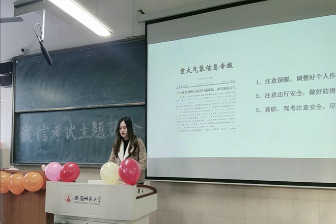 班会伊始,瞿陆子慧老师给大家简要介绍此次班会的主题内容、目的和此次班会的重要性。瞿陆子慧老师勉励同学们诚信迎考,强调“诚信考试是学生的底线,学术不端是最大的耻辱”,建议同学们端正态度、认真复习。老师指出“身体是革命的本钱”,一定要注意保暖,调整好个人作息,以良好的姿态复习迎考。此外,老师还对假期安全作出重要强调,提醒同学们注意出行安全,做好个人防护措施。瞿陆子慧老师表示,平安无小事、安全记心中,不在学校更要注意人身安全,今日校园每日打卡、安全报备时刻联系。