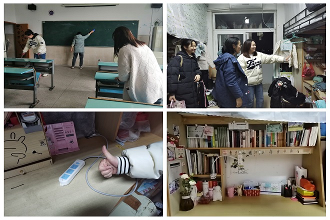 3月19日晚,为保证学生宿舍用电安全,18卓语专业的班长张佳烁、团支书叶洳飒对班级同学所在寝室开展了查寝活动,检查过程中,发现返校学生寝室物品摆放有序,地面整洁干净,部分学生寝室学习氛围浓厚。查寝结束后,班长与团支书将查寝情况在班级群内进行汇报。