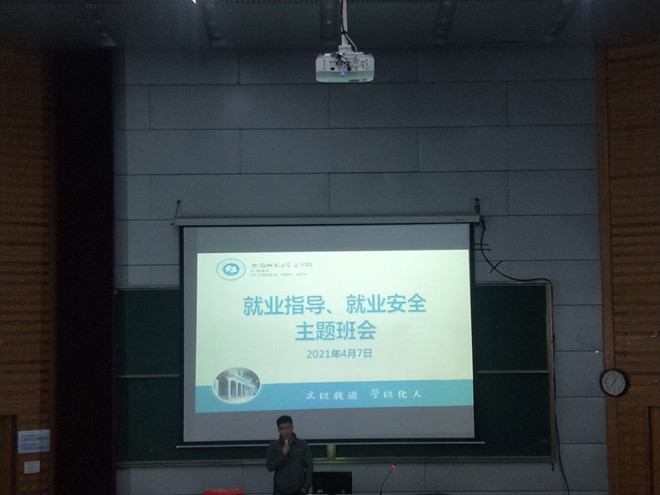 202147日,必赢线路检测3003no1辅导员李震在2010105教室召开就业指导暨就业安全主题班会,2021届汉语言文学专业、汉语国际教育专业和戏剧影视文学专业200余位毕业生到会。