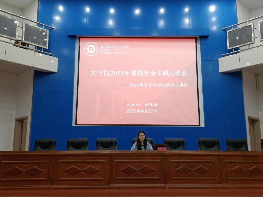 会议最后,杨玉婷作2019年暑期社会实践总结汇报以及2021年暑期社会实践动员讲话。她从三个方面总结2019年暑期社会实践:“四个到位”展现实践新气象;“四个+”开创实践新模式;融入式成长推动实践新高度。社会实践活动是大学中不可或缺的课程,她鼓励同学们积极参加2021年暑期社会实践,介绍了开展规则,并向有意向带队的同学提出亟待解决的问题:实践主题如何展开;专业特色如何结合;现有资源有哪些;如何进行队员招募。她建议同学们从这些问题入手,利用好即将到来的五一假期,多做思考,从而更好地进行前期准备工作。