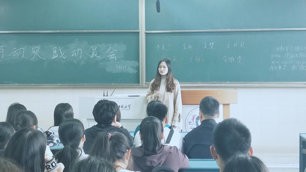 为了让同学们有更好的实践活动体验,树立劳动责任意识、增强个人体魄,2019级汉教、秘书、戏影专业的辅导员瞿陆子慧老师于4月21日下午组织三个班级同学在2050202教室开展“劳动实践动员会”,三个专业全体同学到场参会。