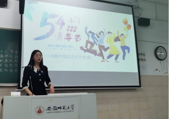 今年是中国共产党成立100周年,也是纪念五四运动102周年,为了继承和弘扬五四精神,进一步引导激励广大青年学党史、强信念、跟党走,4月28日晚,20级中国语言文学2班于行知楼2050502教室举办了“致敬青春,献礼五四”主题团日活动。活动由团支书江津主持,二班同学准时到场,积极参与。