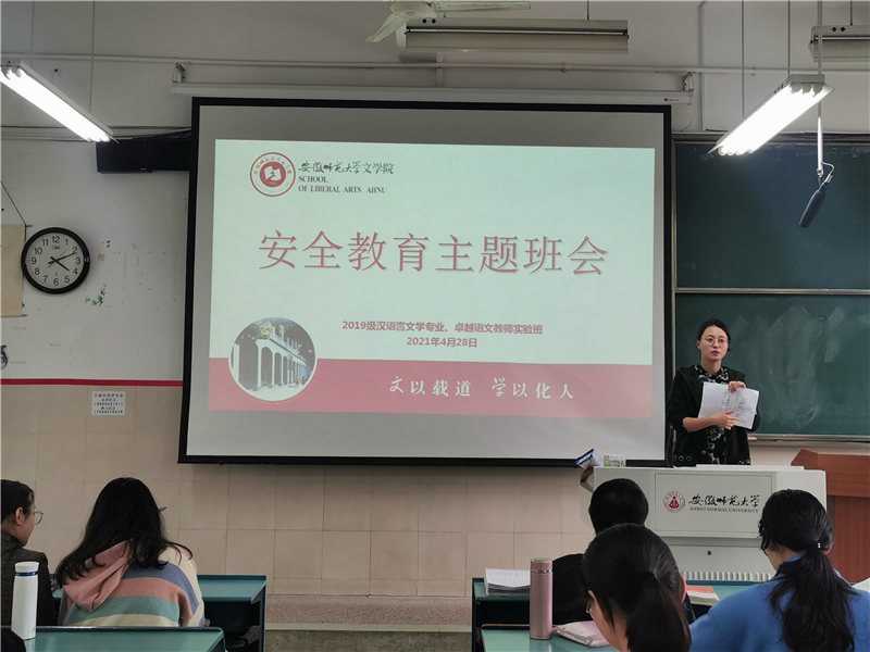 4月27日上午,2019级汉语言文学专业于2050301教室召开安全教育主题班会。班会由必赢线路检测3003no1辅导员孙霁雯老师主持,2019级汉语言文学专业,卓越语文教师实验班全体同学参加。
