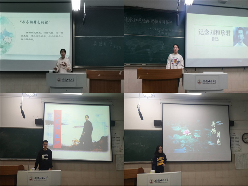 紧跟时代步伐,传承红色经典。为庆祝中国共产党建党100周年,2019级汉语言文学专业与卓越语文实验班结合“传承红色经典,感悟家国情怀”的主题,分别展开各自班级的试讲活动,试讲篇目也跟随着新课标课改步伐,与时俱进,包括《纪念刘和珍君》、《祝福》、《以工匠精神雕琢时代品质》、《沁园春·长沙》、《红烛》等。上一轮优秀讲课的同学担任评委,促进同学之间相互交流的同时,还能发现相互之间的不足之处,有利于同学们的经验分享与说课水平的进步。