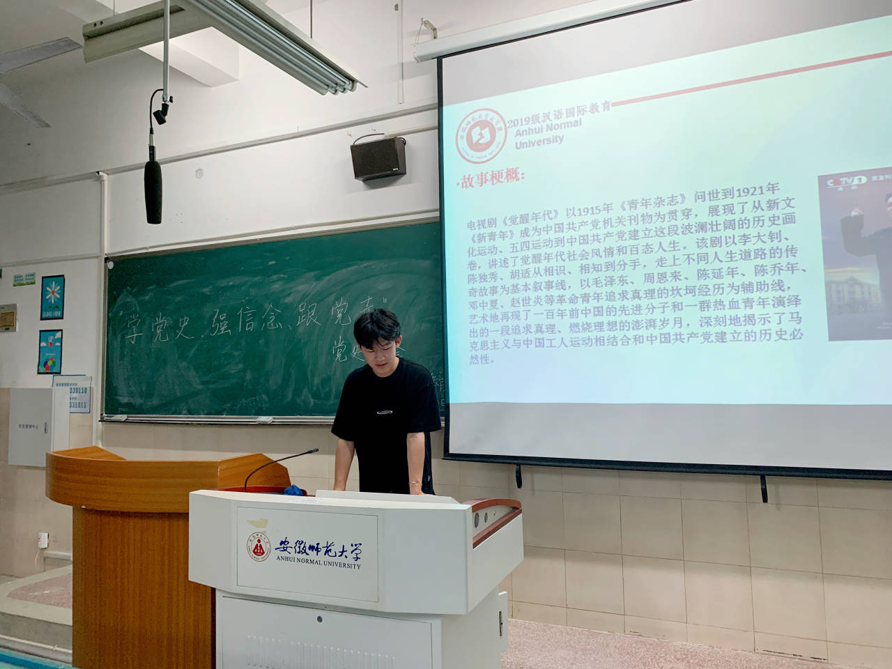 为了更好地学习党的历史,坚定艰苦奋斗的信念,19级汉语国际教育专业于6月10日晚在行知楼2050401教室举行《觉醒年代》观影会。本次观影活动由团支书郝兴隆主持。