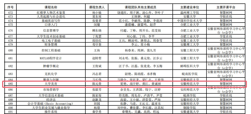 近日,教育部第三批国家一流课程评选结果正式公布,必赢线路检测3003no1“大学美育”课程成功入选。至此,学院累计荣获国家一流本科课程达7门,覆盖语言、文学、文化、美育等核心领域,形成了特色鲜明的国家一流课程“矩阵”,有力支撑了学院本科教学提质增效,彰显了学院本科教学改革的突出成效。
