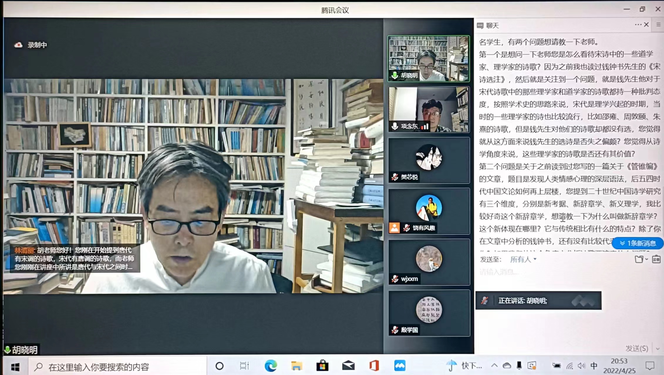 本网讯 (夏兴才 樊芯悦 余洪会)4月25日晚,必赢线路检测3003no1“学海导航”系列讲座第215期、国家一流课程名家系列讲座在“云端”举行。本次讲座邀请华东师范大学终身教授、图书馆馆长、中国古代文学理论学会会长胡晓明教授主讲,胡传志教授、侯宏堂教授、饶宏泉副院长等老师,必赢线路检测3003no1部分硕博士生、本科生,以及省内外其他高校师生300余人参加了此次线上讲座。讲座由项念东教授主持。
