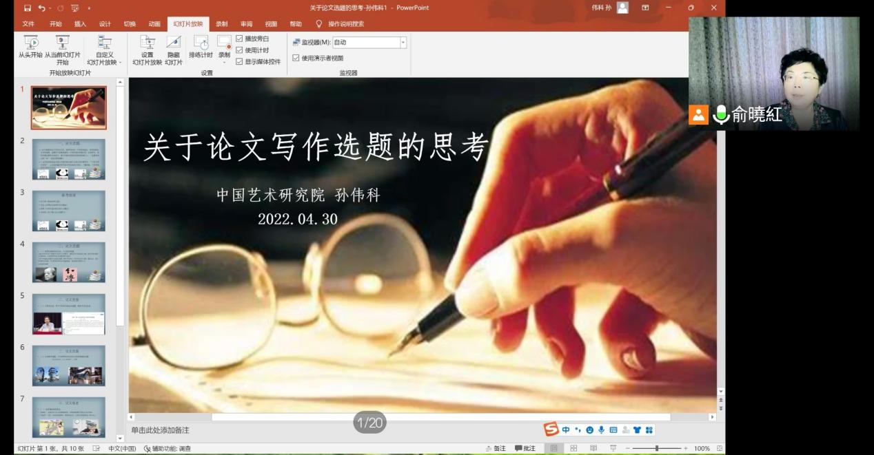 4月30日晚,必赢线路检测3003no1第217期“学海导航”系列讲座在“云端”如期举行。本次讲座邀请中国艺术研究院艺术学系主任、博导,中国红楼梦学会副会长孙伟科教授主讲。讲座由俞晓红教授主持,来自2020级所有专业的390余名学生全程参加。