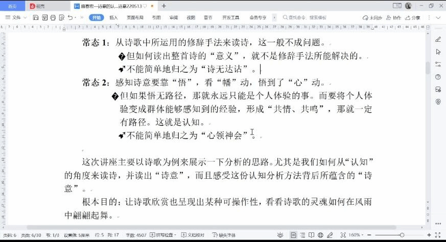 讲座伊始,施春宏教授从“中文系两途——对话的壁障和互动的空间”为切入点,点明对诗意的认知读解和通过诗意的诗文解读让文字焕发新的诗意,在文学与语言学中是共同存在的。由此,施春宏教授通过若干首诗歌的赏析解读来发掘“文学与语言学之间有无互动的可能”这一学术问题,并通过“诗意建构中蕴涵的人类认知机制”和“人类认知世界过程中充盈的诗意”两个视角与在场师生进行这一问题的学术探讨。
