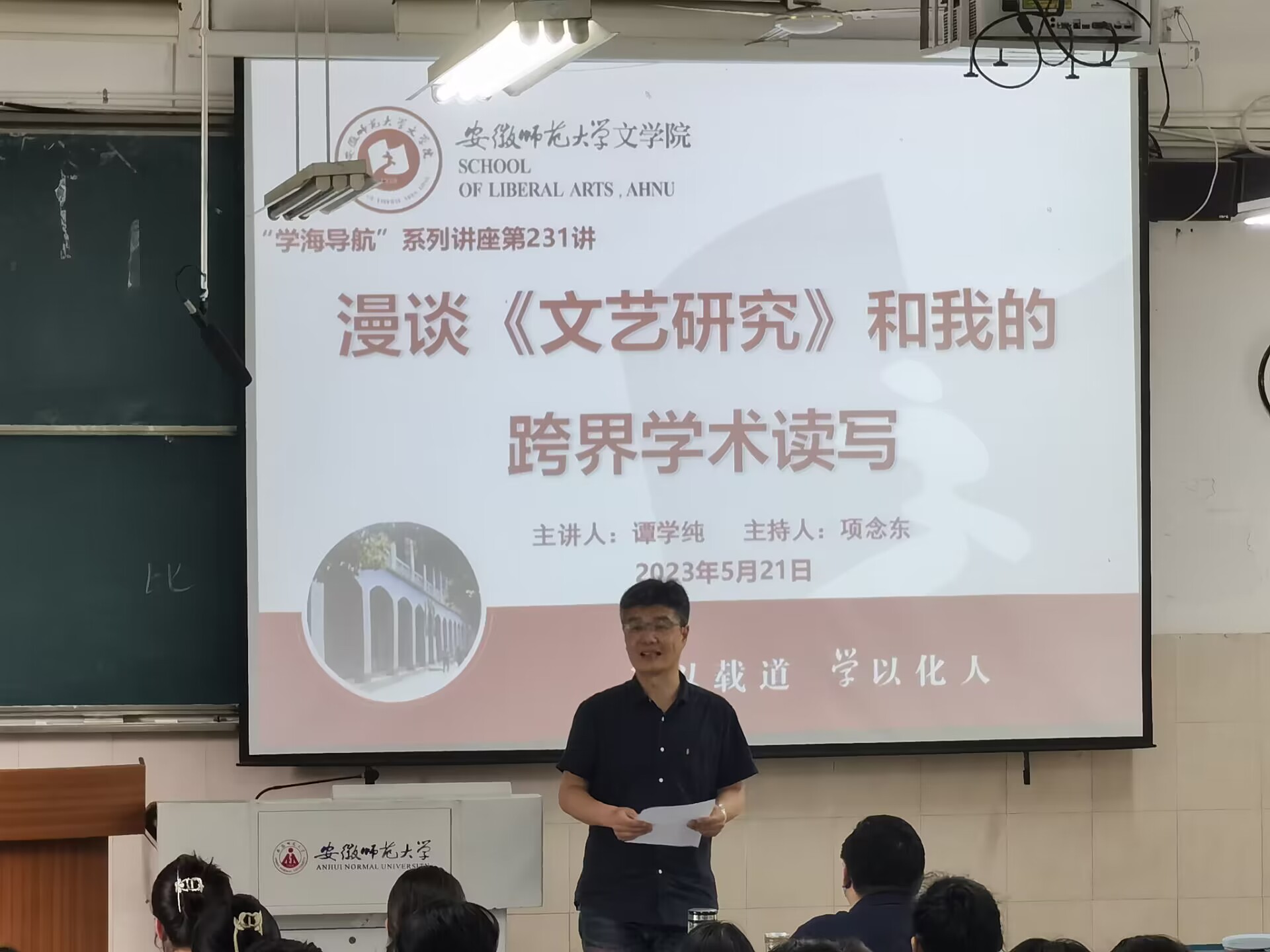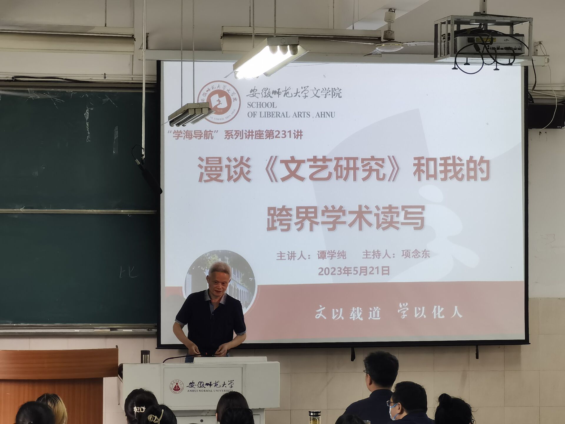 本网讯(文/图 王婷玉)5月21日下午,必赢线路检测3003no1第231期“学海导航”系列讲座如期举行,福建师范大学教授、博士生导师谭学纯应邀为必赢线路检测3003no1学子带来“漫谈《文艺研究》和我的跨界学术读写”的专题讲座。讲座由必赢线路检测3003no1院长项念东教授主持,储泰松教授、胡承佼副教授以及汉语言文字学方向博、硕士生和2021级本科生同学参加本次讲座。