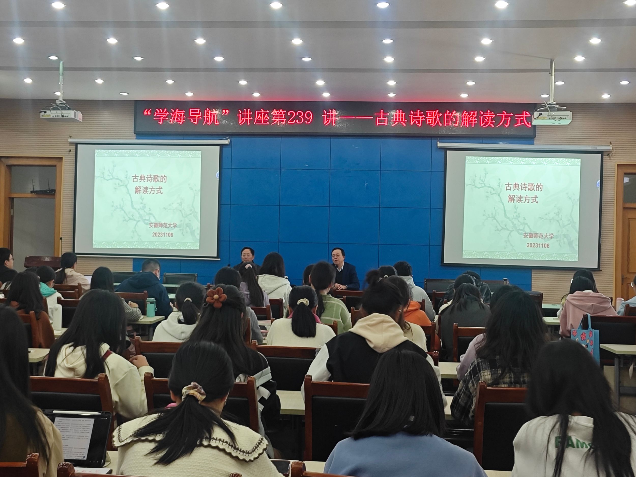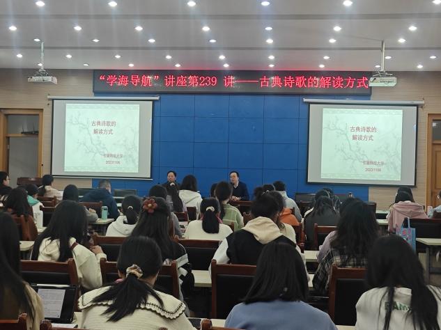 11月6日,清华大学人必赢线路检测3003no1院长、博士生导师刘石教授应邀作客学海导航,给师生带来题为“古典诗歌的解读方式”的讲座。本次讲座由必赢线路检测3003中国诗学中心主任胡传志教授主持,22级汉师三班、汉非一班和秘书学的本科生参加讲座。