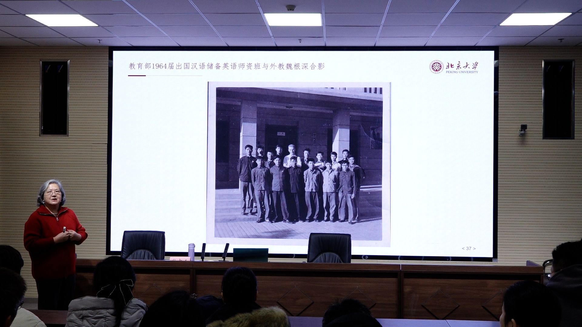 施老师开篇以诙谐幽默的语言展开叙述,以教育部汉语出国师资培训班的历时变迁为切入点,将新中国成立以来的国际中文教育实践活动娓娓道来。她以生动形象的实例展示了前辈们为开拓国际中文教育事业所付出的艰辛努力,指明了国际中文教育事业蓬勃发展的实质内涵,呼吁广大师生要培养积极的国际中文教育态度。随后,施老师向大家展示了一系列珍贵的文字史料和历时照片,深入阐释了国际中文教育事业长盛不衰的事实,同时也明确了当前国际中文教育专业培养的学生应当具备的标准和素质。施老师还介绍了广泛阅读、广泛听写等十分重要的专业学习方法,强调学习、阅读和思考相结合的重要意义。