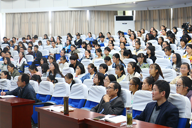 孔令达教授首先以语言学类课程在必赢线路检测3003no1各专业课程中的比重和特点为例,指出该类课程对不同专业的重要性程度,提醒学生关注该类课程。其次,他结合大学生学习特点与个人发展,对学习语言学类课程的意义进行了阐释,具体体现在知识体系的构建、创新能力的培养、未来职业的发展等。他从语言学处在人文社会科学和自然科学的结合部的学科特点出发,提出要利用学科迁移和整合融合的方法进行创新,深刻诠释了“大学教育的突出特点是培养学生的批判能力和创新能力”。再次,他通过现代汉语的歧义现象、特殊结构等常见语言现象的深入分析,生动解释了语言理论与语言现象必须统一起来的原因,也勉励在学生们在学习过程中掌握各种分析方法,提高语言分析能力。此外,他结合丰富的教学经验,强调课后训练的重要性,要在练习中继续巩固复习理论知识。最后,他还鼓励同学们说好普通话、练好粉笔字和钢笔字,以实际行动提高语言运用能力。