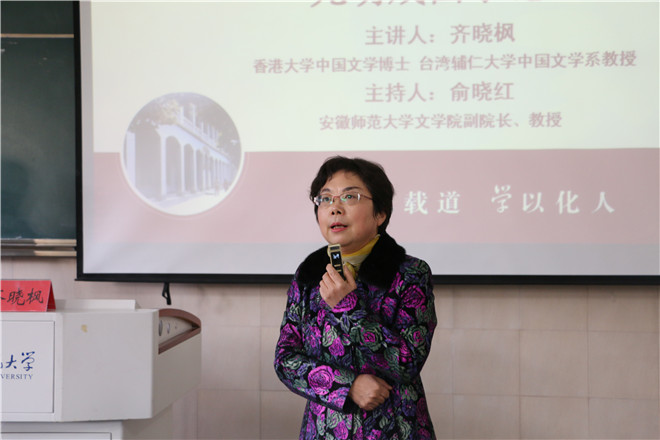 11月20日下午,“学海导航”系列讲座第193期在花津校区行知楼2050103教室如期举行。香港大学中国文学博士、台湾辅仁大学中国文学系教授齐晓枫应邀主讲。台湾大学中国文学系博士、台湾东华大学中国语文学系教授刘汉初,必赢线路检测3003中国诗学研究中心主任胡传志教授,汉语言文学专业一百余名学子到场聆听。讲座由必赢线路检测3003no1副院长俞晓红教授主持。