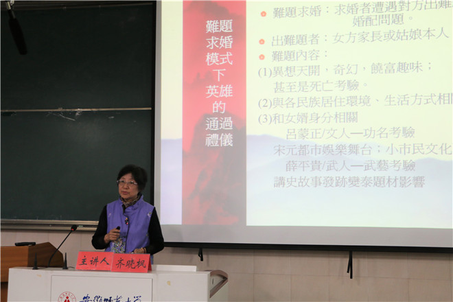 俞晓红教授为本次讲座作总结。她指出,齐晓枫教授对讲座主题“从抛绣球到榜下脔婿”作了详细阐述,从榜下脔婿的故事题材中分析其潜藏的人情世故、社会现实以及戏曲表现模式,启示在座学子要多读书、多开拓视野,锤炼自己的思维,并学会用新视角从熟悉的话题中发现新思路,学会创意写作。(文/李明珠 图/王雯)