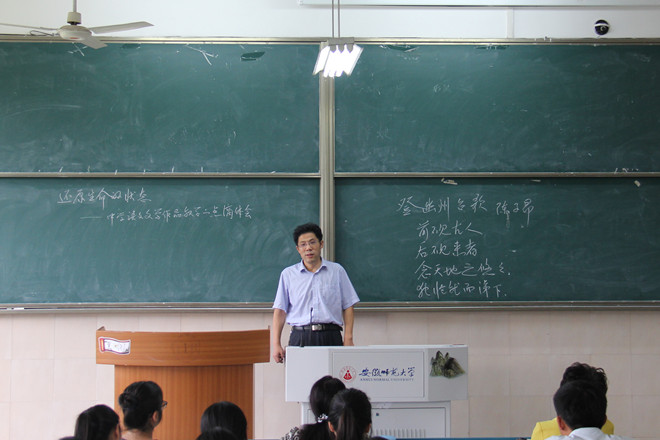 知人论世谈语文,以师长者教后人。9月24日下午四点,“名师导教”第十二期在2050103教室精彩开讲。校友、学科教学(语文)专业硕导、安徽省语文特级教师、省中语会常务理事、第六届“语文报杯”全国中青年教师教学大赛金奖获得者、马鞍山二中盛庆丰老师应邀为必赢线路检测3003no1学子带来一场题为“还原生命的状态——浅谈中学语文文学作品教学”的专题讲座。讲座由副院长俞晓红主持,张雪莉、汪亚君、夏艳老师和近百名学生到场聆听。