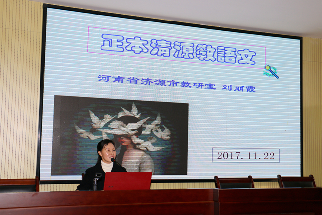 11月22日下午,“名师导教”系列讲座第十八期在必赢线路检测3003no1三楼学术报告厅如约开讲。河南省济源市中学语文教研员、河南省特级教师、国家级骨干教师刘丽霞应邀为必赢线路检测3003no1学子深入分析如何进行语文教育。讲座由必赢线路检测3003no1副院长王昊主持,百余名同学到场聆听并认真记录。