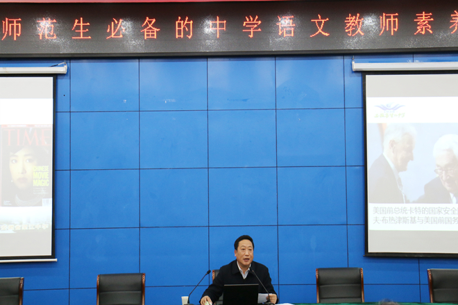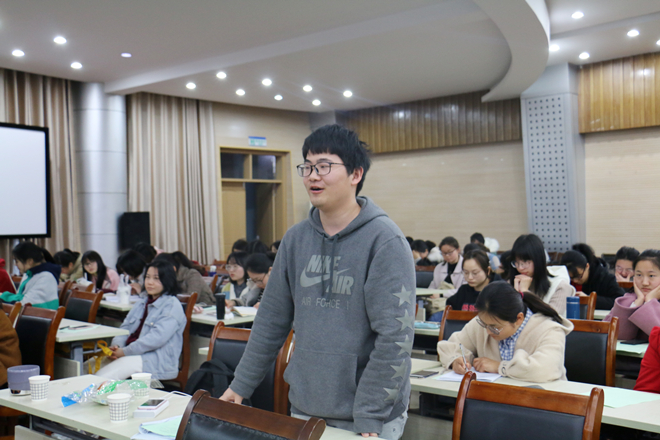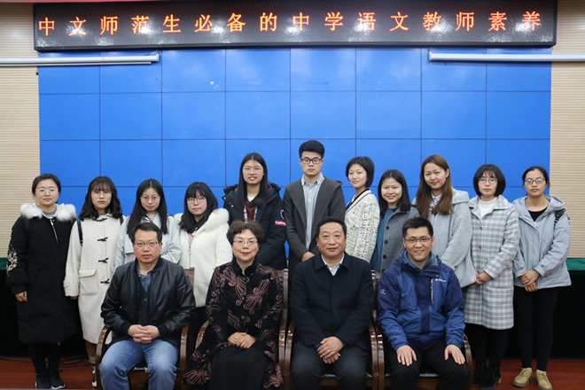 戴老师提出,在当下语文教学过程中,要具备丰厚的汉语言文学专业理论知识和技能,同时还应对自己所教学科的知识有全局的把握,知道每一部分在全局中的地位及其相互间的关系;必须具备深厚的文人气质、文人情怀,具有健康的审美情趣;必须具备一些基本的外在素质,如三笔字、教学语言、讲演能力、写作能力等教师基本素养。最后,戴老师以辛弃疾“莫避春阴上马迟,春来未有不阴时”和于漪“一辈子做老师,一辈子学做老师”作为讲座内容的结束语,对在座的师范生寄寓了深切期望。