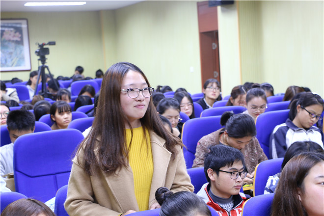 讲座的问答环节中,董宇教授就同学们提出的问题做出详细解答。董宇教授表示,公文写作要讲究大的构成与小的结构相结合,要在总结自身的正确经验、紧扣住写作目的的基础上成文成章。同时,她讲道,语言技巧的应用不包括虚构成分,公文内容一定要确保真实可信。