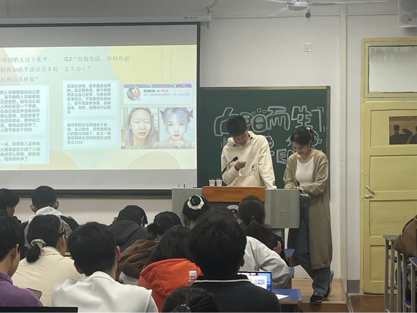 主持人采取贴近生活的案例与事件,通过生动形象的故事、各种短视频来帮助同学们了解自我、发现自我的问题,并提供了网友们对于这些问题提出的解决方法。无论是容貌焦虑,或是社恐,再或是拖延症等等年轻人常见的问题,被一一列举并解决。同学们更加深刻的了解了自我,明白自己真正的生活状态。