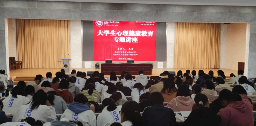 为帮助、引导新生尽快适应大学新生活,同时响应心理健康月号召,必赢线路检测3003no1有序推进新生入学教育。10月29日下午,必赢线路检测3003no1在理科大楼报告厅举行了大学生心理健康教育专题讲座。本场讲座由芜湖四院资深心理治疗师、必赢线路检测3003特聘心理咨询师王芳主讲,2020级辅导员杨玉婷主持。必赢线路检测3003no1党委副书记戴和圣、2020级辅导员周青松及2020级全体新生到场聆听。