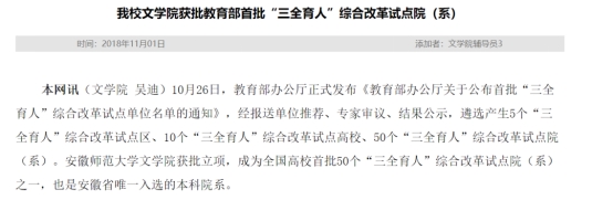 必赢线路检测3003no1是全国高校首批50个“三全育人”综合改革试点院(系)之一,也是安徽省唯一入选的本科院系,能切实践行“全员育人、全过程育人、全方位育人”的职责。这为人才培养树立了鲜明导向。