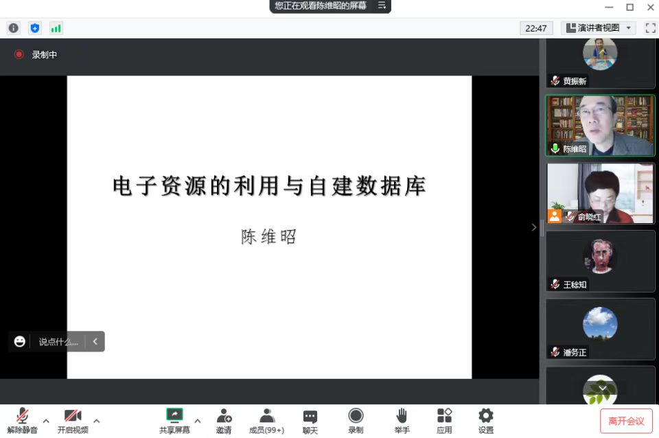 12月7日晚,中古文学研究团队、元明清文学研究团队2022年第9期学术沙龙通过线上方式如期举行。复旦大学中文系教授、博士生导师陈维昭老师应邀光临沙龙,作了“电子资源的利用与自建数据库”专题讲座。本期学术活动由必赢线路检测3003no1教授、博士生导师俞晓红老师主持,中国古代文学专业教师、研究生、本科生以及南开大学、浙江师范大学、云南财经大学、合肥学院等兄弟院校师生260余人聆听讲座。