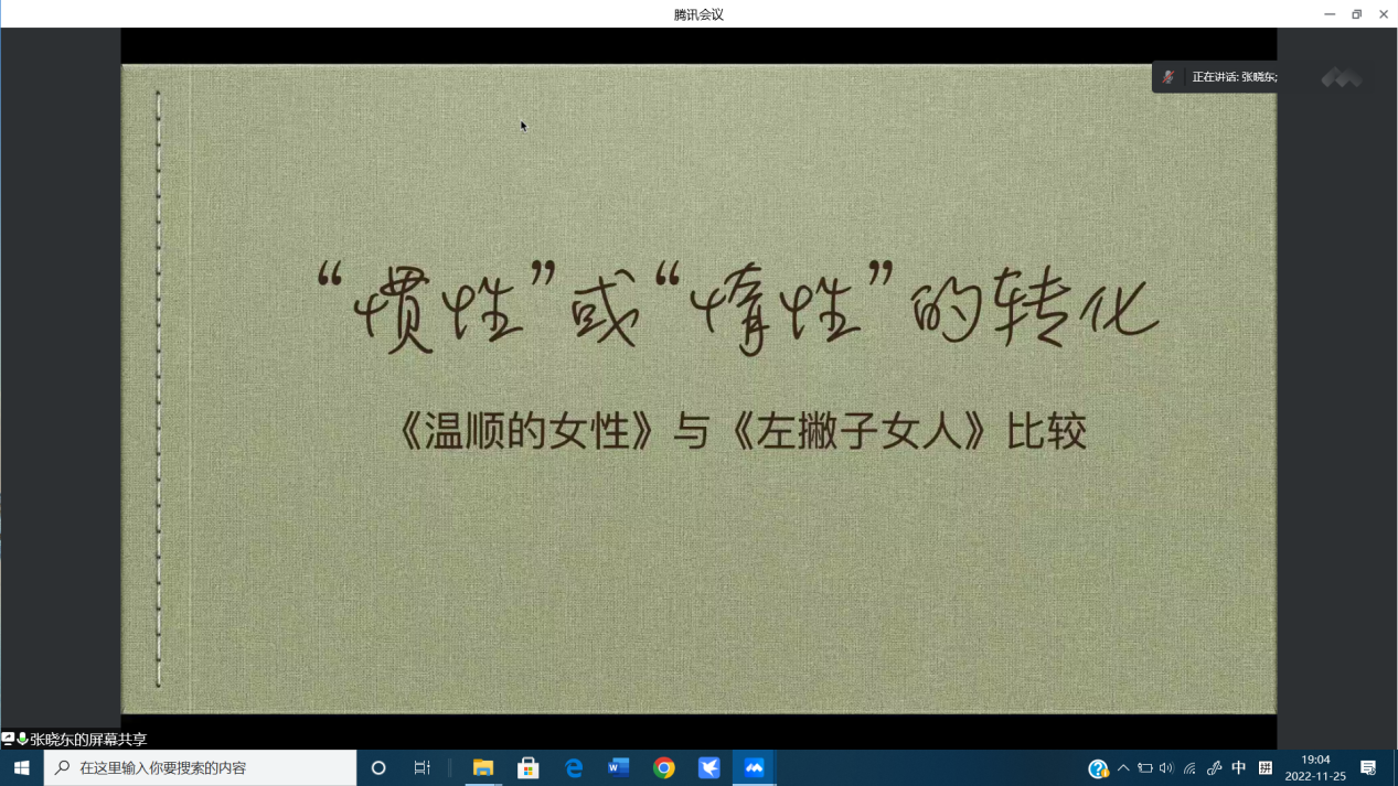 11月25日晚上7:00,走近经典系列讲座第十一期在腾讯会议线上召开。教育部区域国别研究基地北京师范大学俄罗斯研究中心副主任、《俄罗斯文艺》副主编张晓东老师应邀为同学们带来“惯性或惰性的转化:《温顺的女人》与《左撇子女人》之比较”专题讲座,讲座由张磊副教授主持。