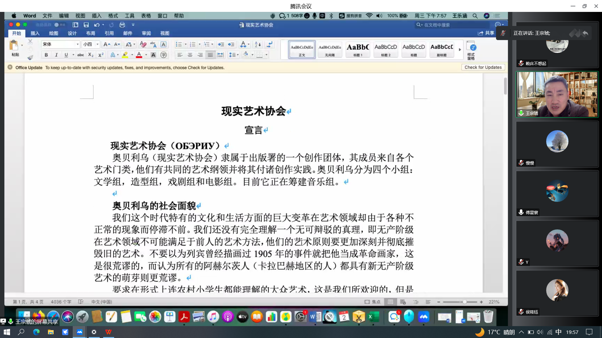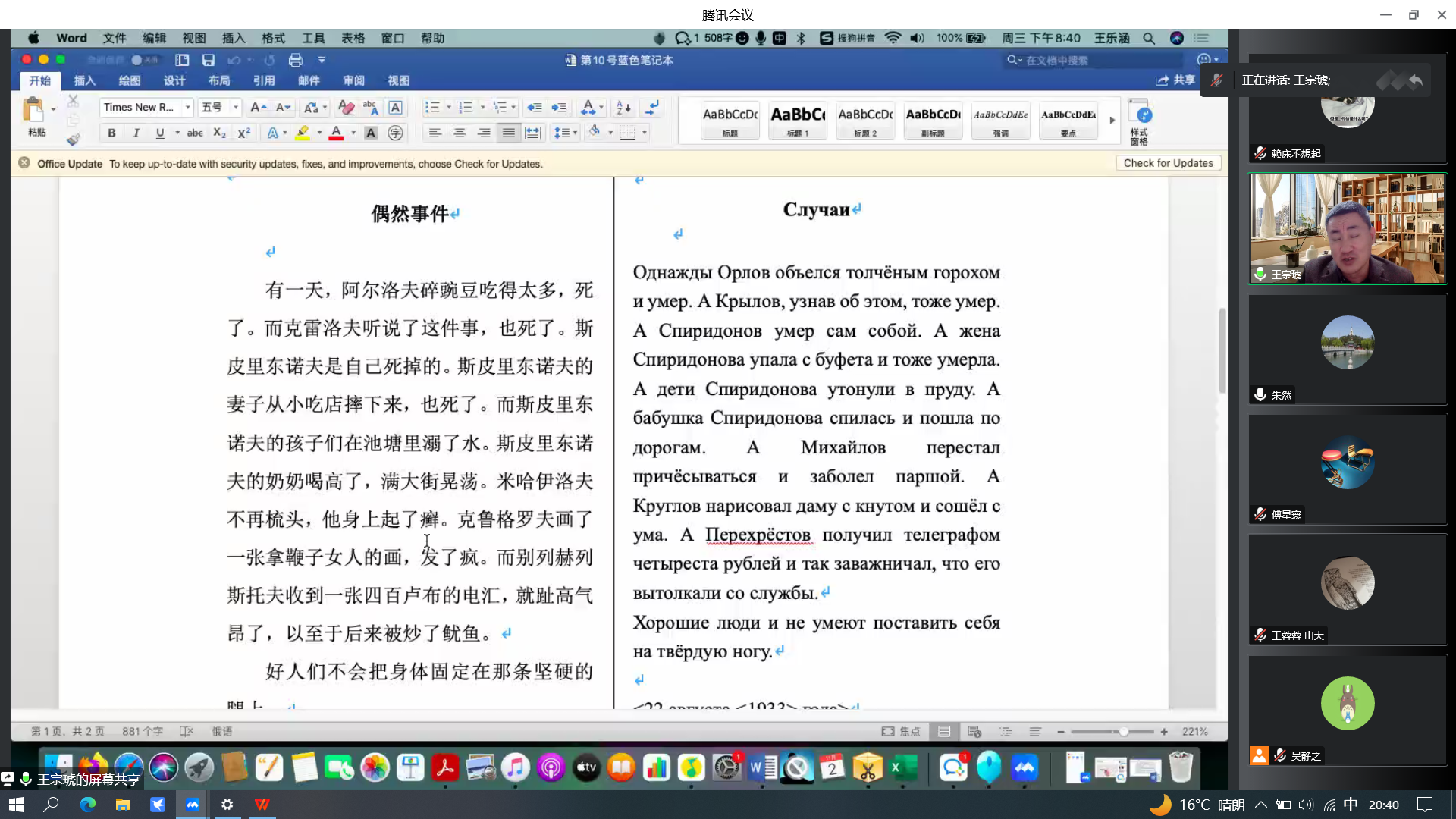11月2日晚上七点,“中俄文学与文论”系列讲座第二期第五讲以线上会议的方式召开。首都师范大学俄语教授、博士生导师王宗琥教授应邀为同学们带来“俄罗斯先锋主义文学的现实观——以‘奥贝利乌’(现实艺术协会)为例”专题讲座,讲座由张磊副教授主持。