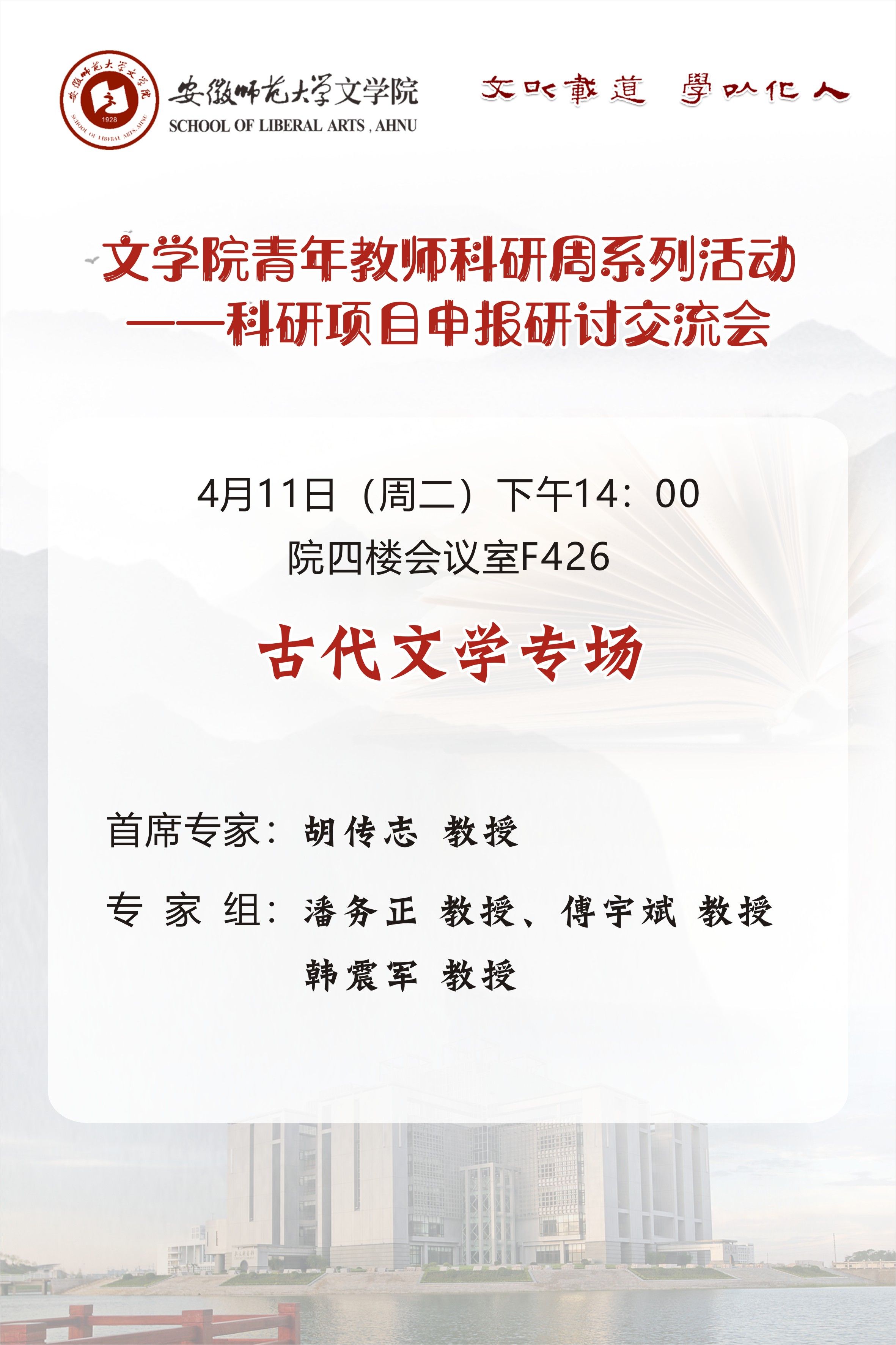 必赢线路检测3003no1青年教师科研周系列活动——科研项目申报研讨交流会【古代文学专场】预告
