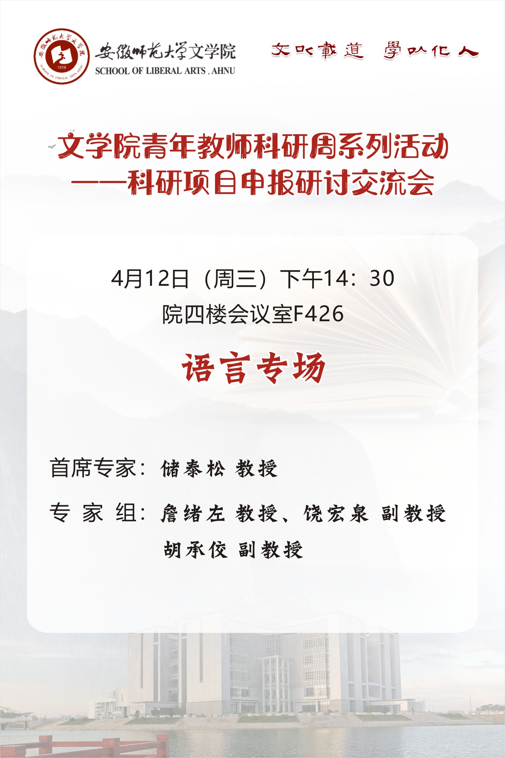 必赢线路检测3003no1青年教师科研周系列活动——科研项目申报研讨交流会【语言专场】预告