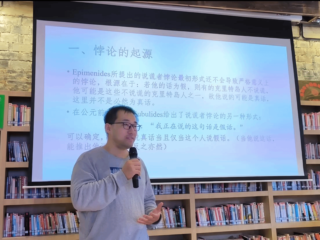 10月21日下午14:00,“天门山下读书会”本科生学术月系列讲座之“逻辑与哲学读书会”在芜湖书房·占川书局顺利举行。程华清博士应邀为同学们带来一场题为“悖论——心灵的迷宫”的精彩讲座。