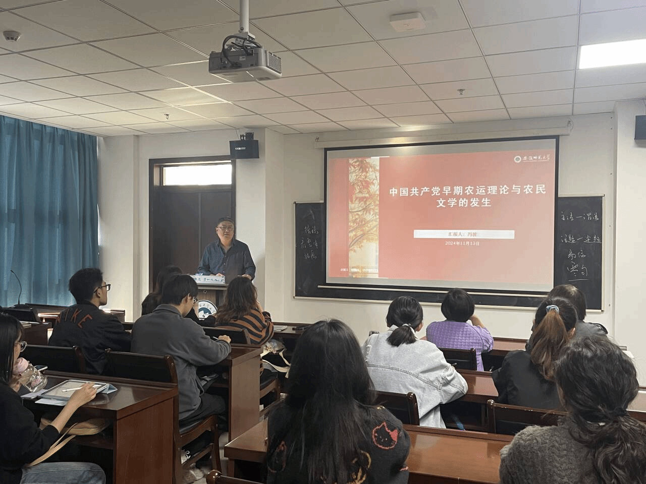 冯波老师长期从事中国现当代乡土文学研究,在学界产生一定的影响。此次讲座内容主要分为三个部分。首先,冯老师用“农民”作为“方法”对“乡土文学”和“农民文学”的概念进行了区分,并具体介绍了周作人、鲁迅和茅盾三位作家的不同“乡土”认识,从而进一步阐述了“乡土文学”是往土里去、“农民文学”是从土来的观点。其次,他对“农民是怎样成为一个阶级”以及“农民是怎样以革命的姿态参与到现代的政治运动中的”这两个问题,进行了深入的分析。在此过程中,他将毛泽东的《湖南农民运动考察报告》和郁达夫的《乡村中的阶级》进行联读分析,视角新颖独特,见解颇有见地。第三,他分别从作为“革命”的农运和作为“政治”的农运两个方面入手,立足于代表性的作家作品,对“农民运动”发生和发展过程及其价值和影响进行了具体分析,并着重探讨了这些作家对“农民运动”的全景式的描写以及各自的不同风格。