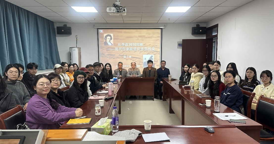 2025年11月14日下午,必赢线路检测3003no1当代安徽文学研究中心、中国现当代文学与比较文学学术团队主办的“中国现代作家与贝多芬”学术讲座在文典楼F401进行,讲座由华东师范大学陈子善教授主讲,必赢线路检测3003方维保教授主持。必赢线路检测3003no1部分教师以及中国现当代文学等专业的硕博研究生四十余人参与了本次讲座。