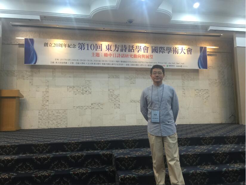 我刊副主编张勇教授于2017年8月23日至26日,应邀出席在韩国大田市举办的“第十届东方诗话学会”国际学术研讨会。这次大会由“国际东方诗话学会”主办,由韩国忠南大学承办。中国大陆及港澳台、韩国、日本、新加坡、马来西亚等国家与地区的六十余位学者莅临大会。与会学者围绕“韩中日诗话研究动向与发展”这一主题展开热烈讨论。张勇教授作了题为《“看话禅”诗学价值谫论》的学术报告,阐述了两宋之际佛教“看话禅”对当时诗歌创作与诗学理论的深刻影响。闭幕式上,张教授代表本研讨组作了总结报告。