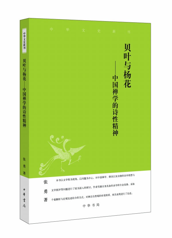 近日,我刊副主编张勇教授新著《贝叶与杨花:中国禅学的诗性精神》由中华书局出版。该书以诗性为视角,以问题为中心,对中国禅学、僧诗以及诗僧的诗学理想与文学批评等问题进行了深入探讨。全书由一篇“引言”与五章主体内容构成,前者为纲领,钩玄提要,后者采取个案解析与宏观论述相结合的方式,进行多角度、多层次地探讨。