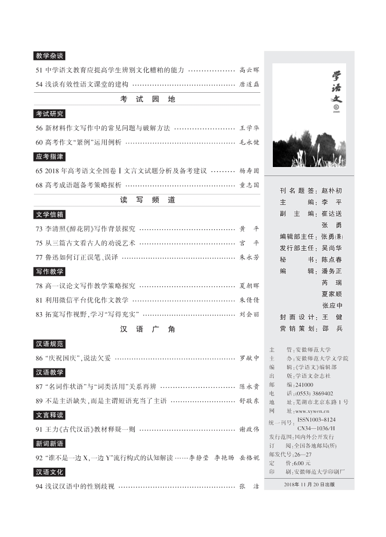2018年第6期目录