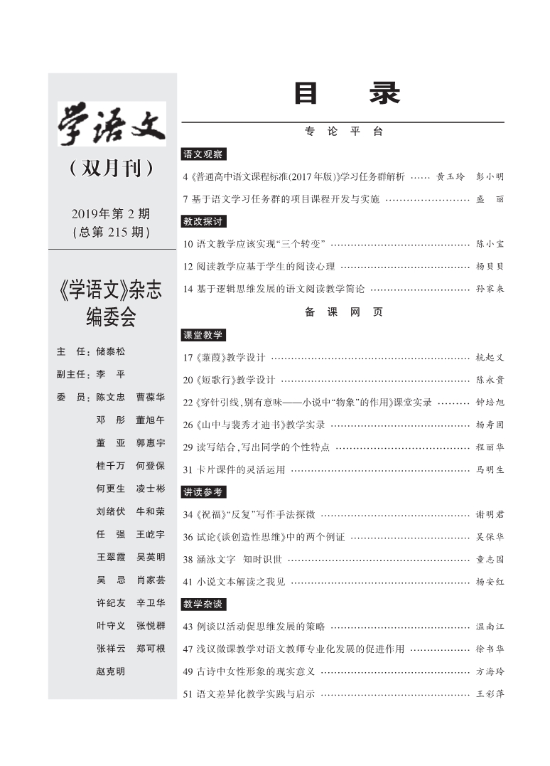 2019年第2期目录