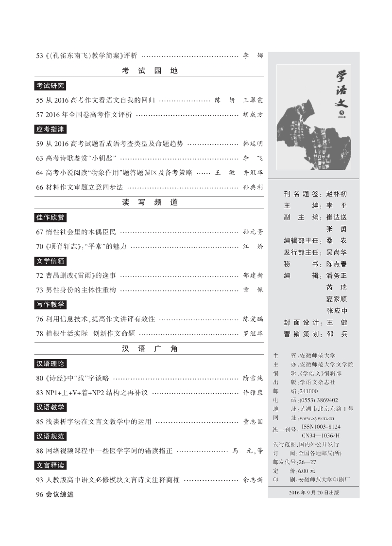 2016年第5期目录