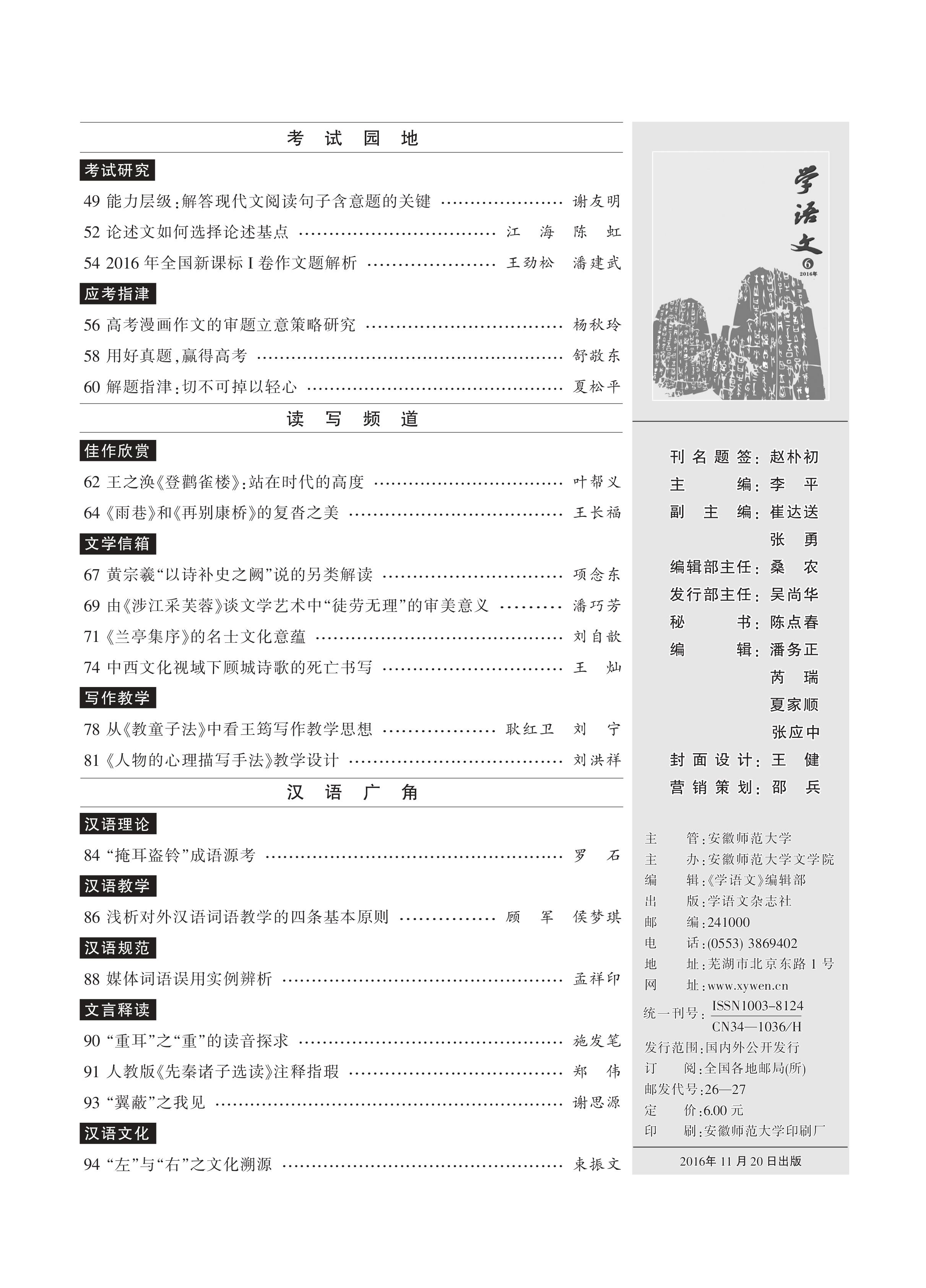 2016年第6期目录
