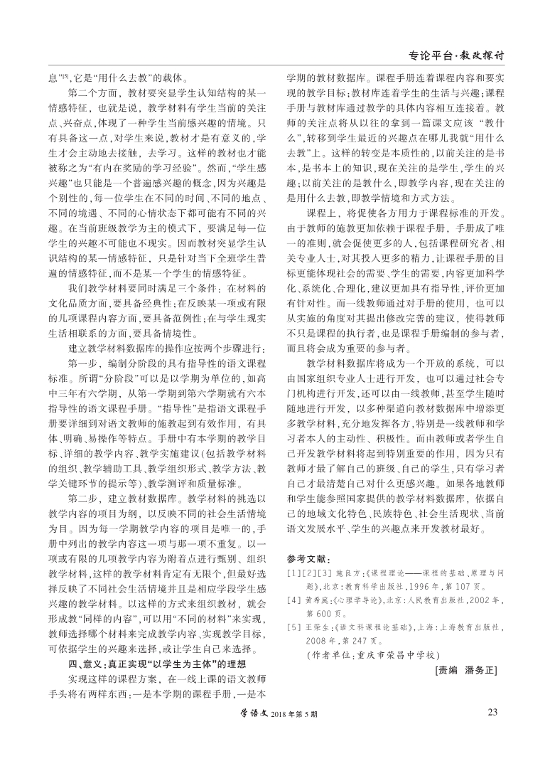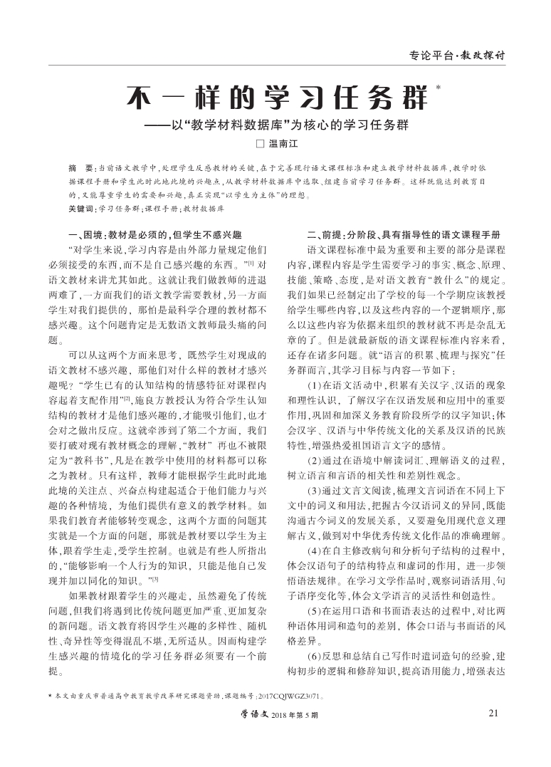 不一样的学习任务群---以“教学材料数据库”为核心的学习任务群