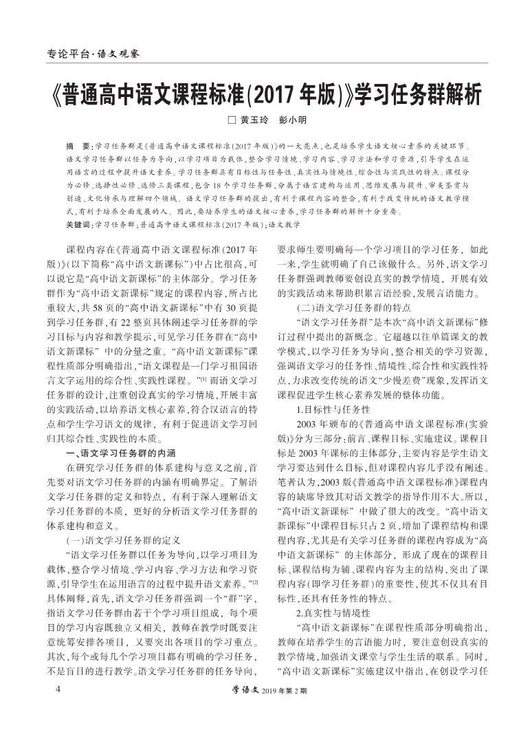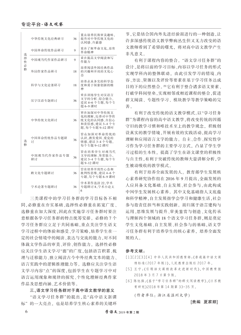《普通高中语文课程标准(2017年版)》学习任务群解析