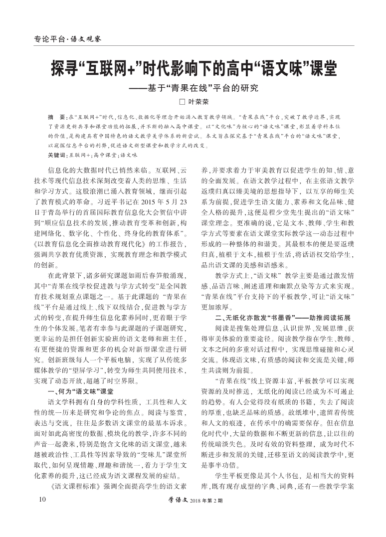 探寻“互联网+”时代影响下的高中“语文味”课堂