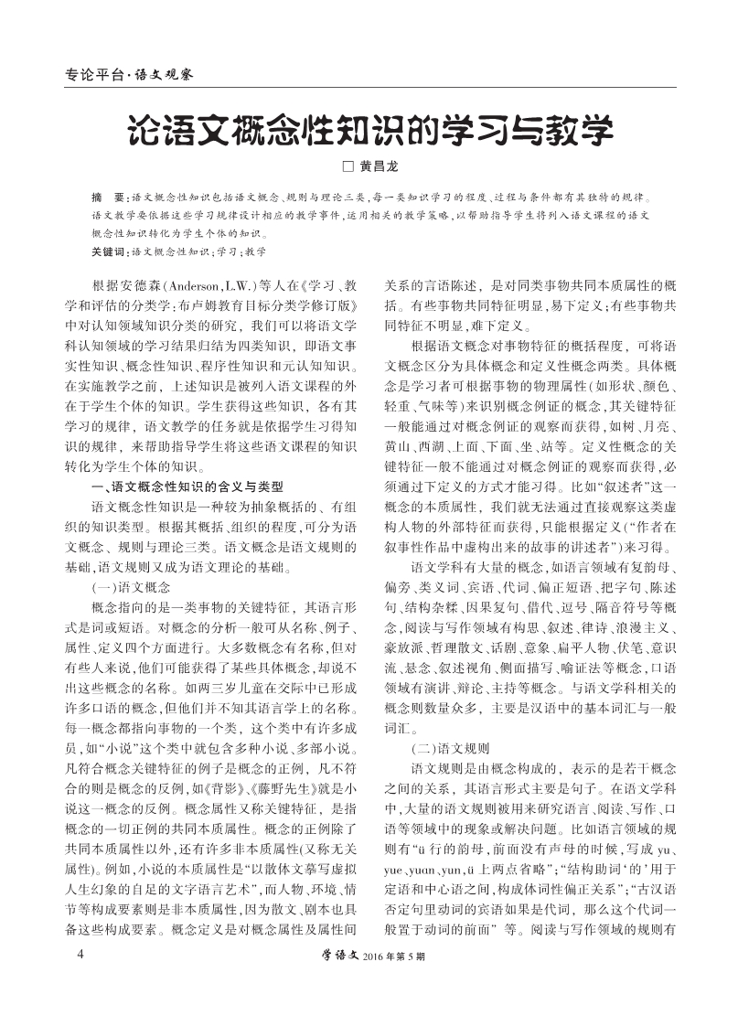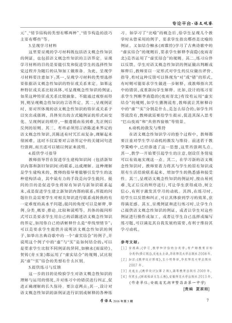 论语文概念性知识的学习与教学