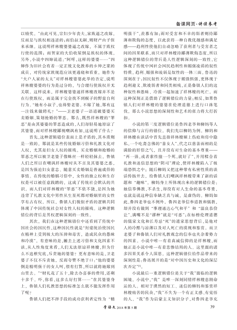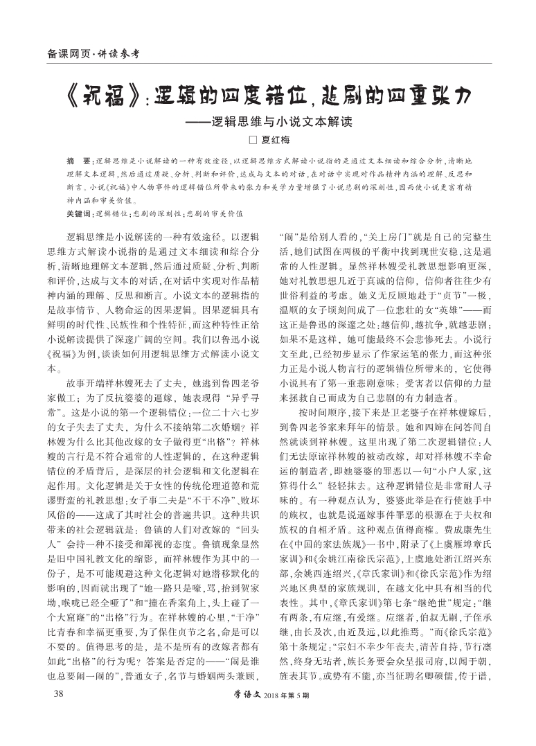 《祝福》:逻辑的四度错位,悲剧的四重张力--逻辑思维与小说文本解读