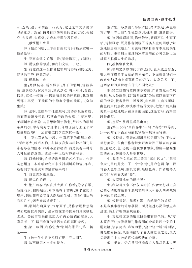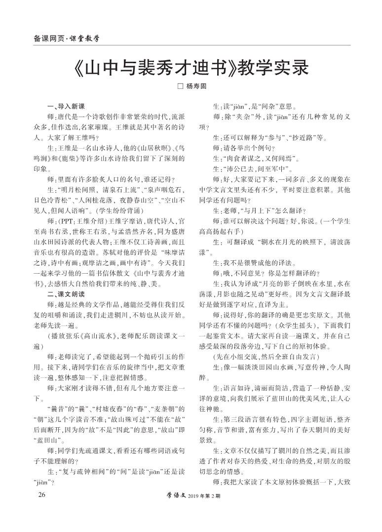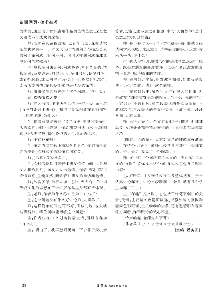 《山中与裴秀才迪书》教学实录