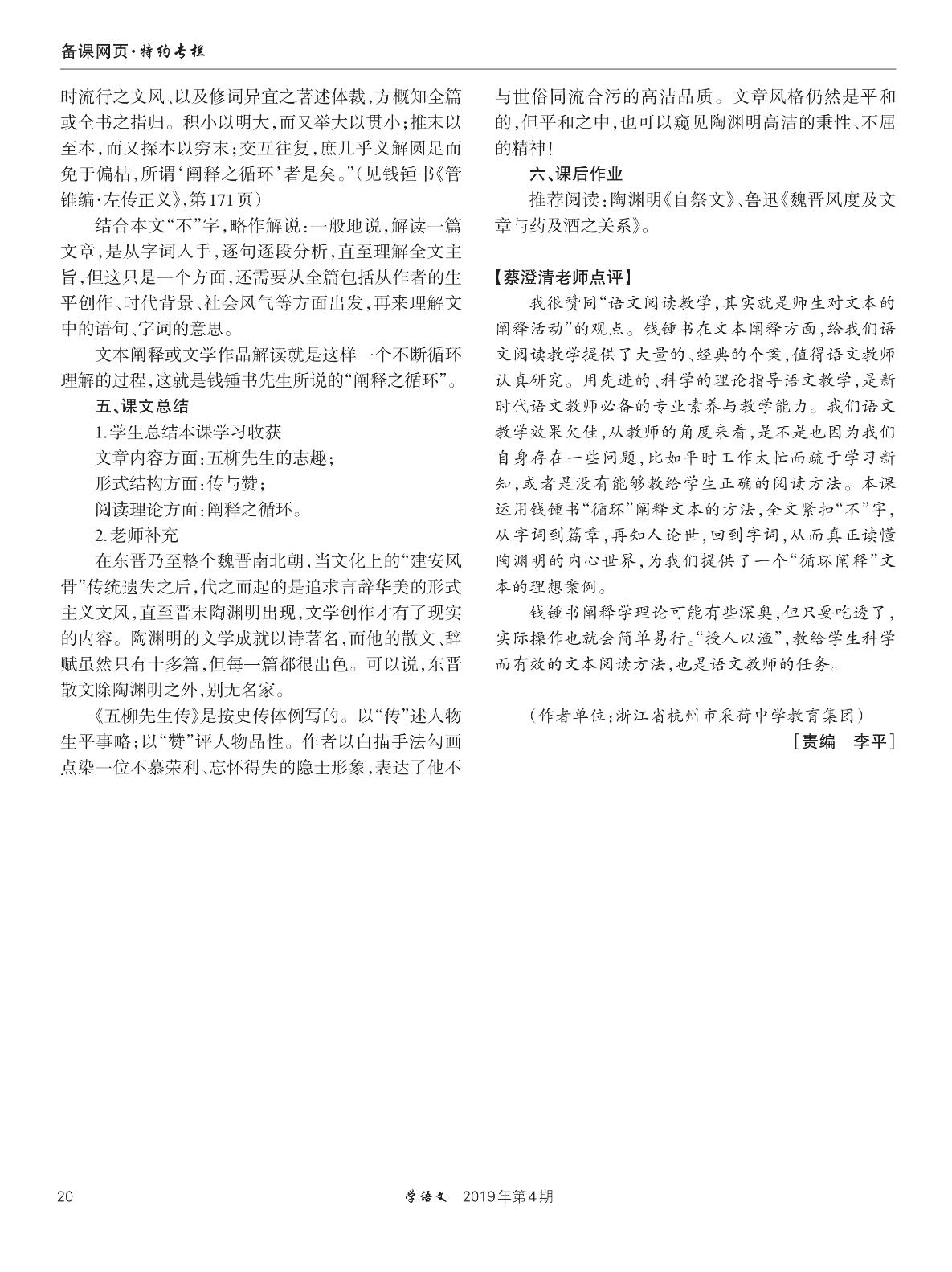 《五柳先生传》教学设计
