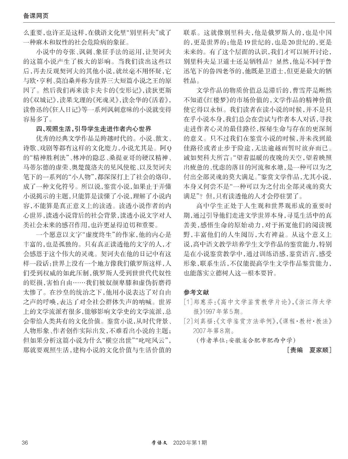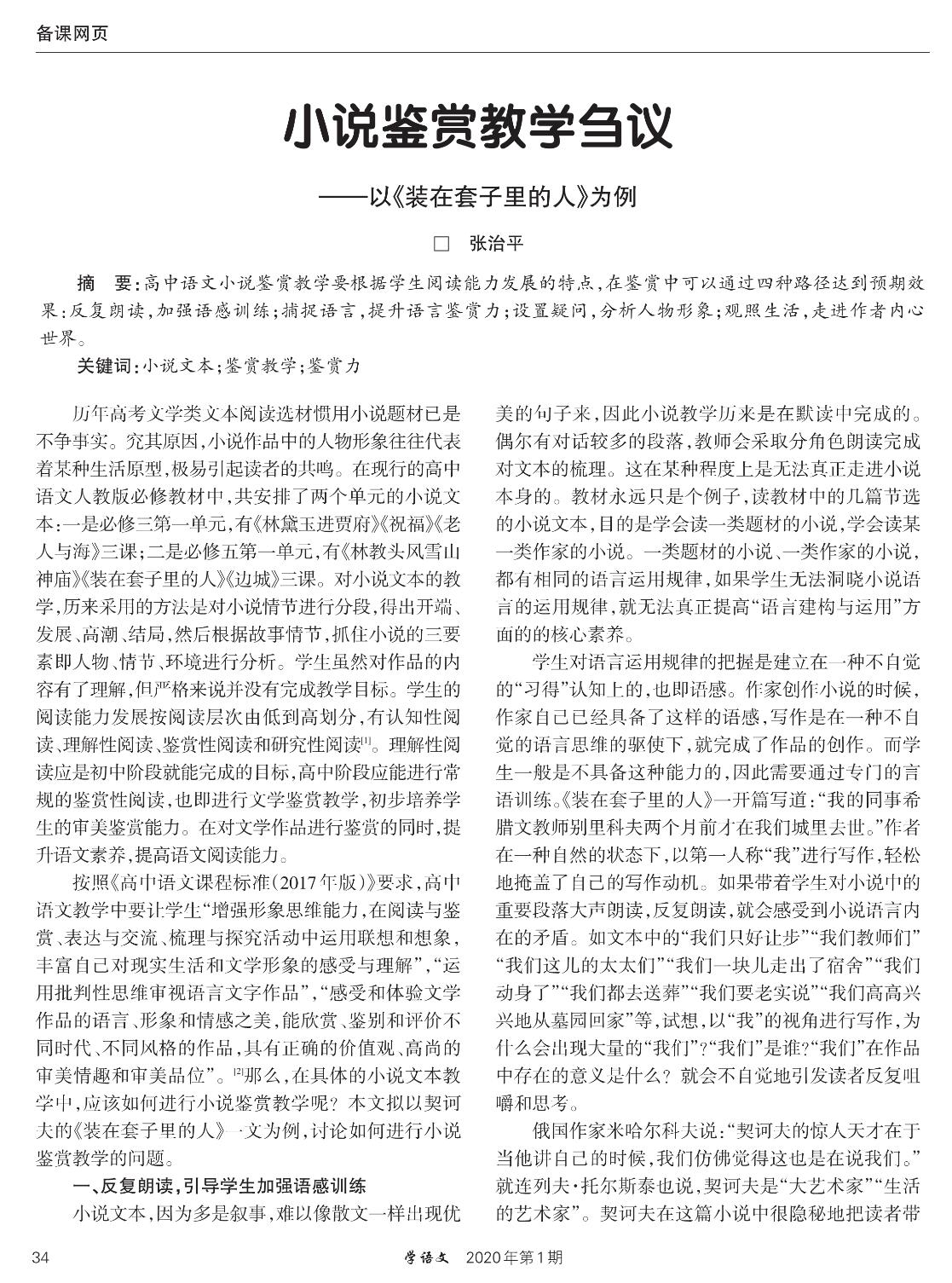 小说鉴赏教学刍议