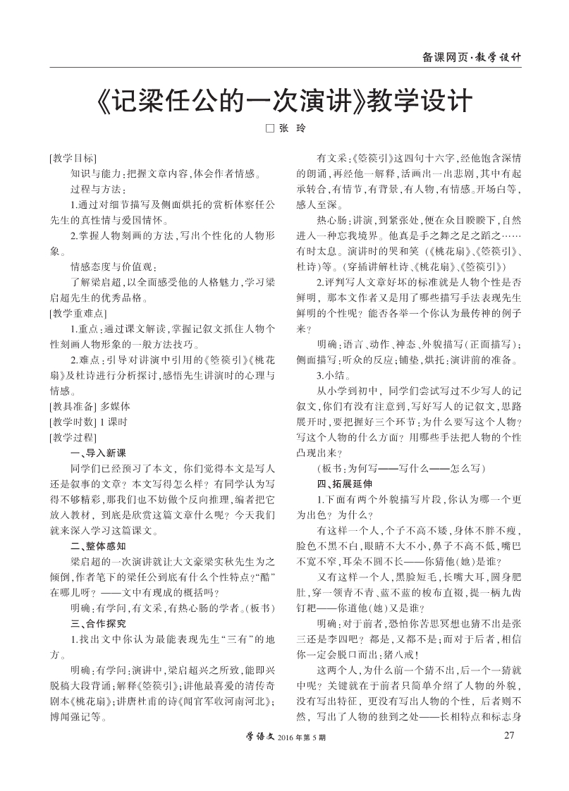 《记梁任公的一次演讲》教学设计