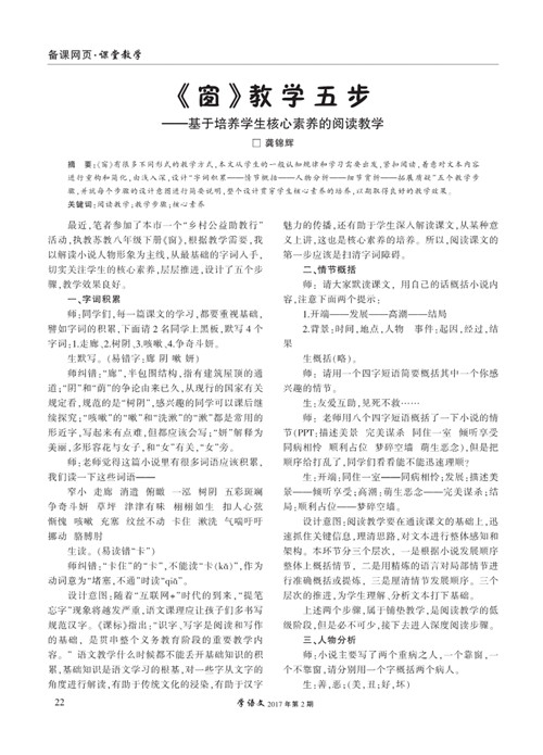 《窗》教学五步--基于培养学生核心素养的阅读教学